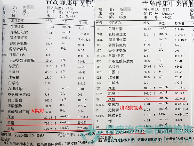 在青島未透析降下肌酐,尿毒癥患